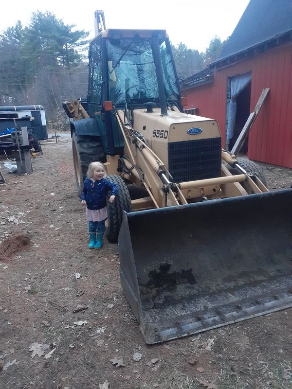 Our Ford 555D Backhoe Loader (Triple Nickel) is currently working for Dancing Willows Trucking and Dancing Willows Farm.